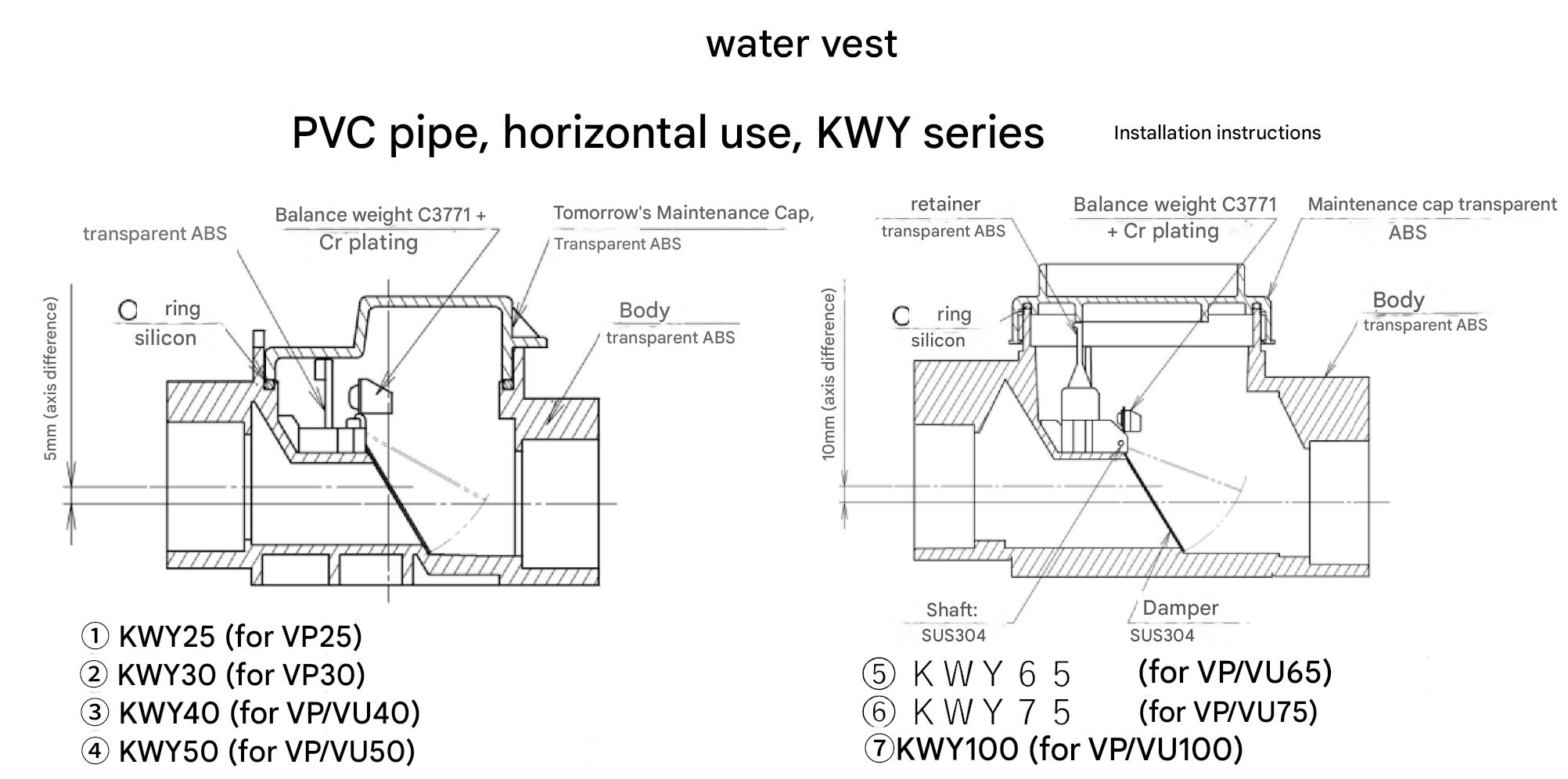 | KWY65 | VP/VU65 | φ151 | 192.5 | 266 |