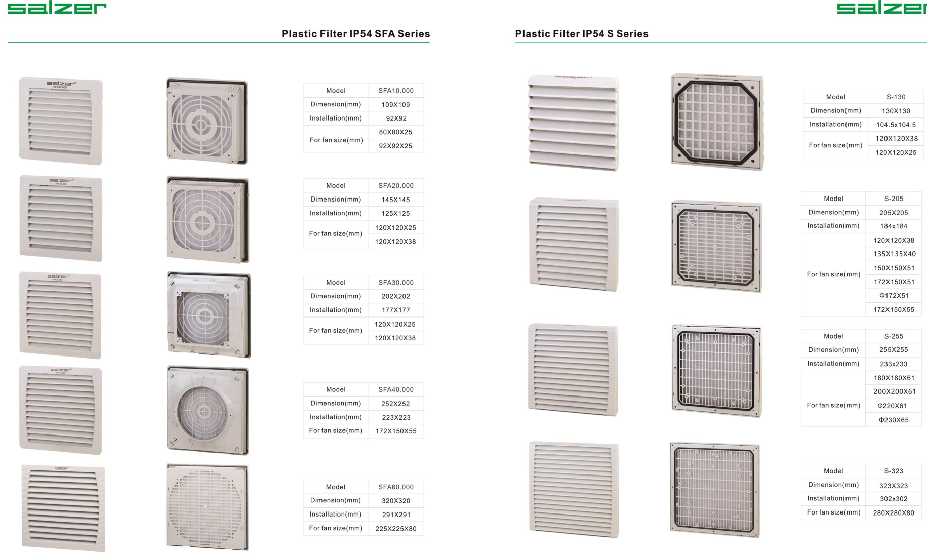 • Application: Used with axial fans for air inlet/outlet in industrial enclosures.