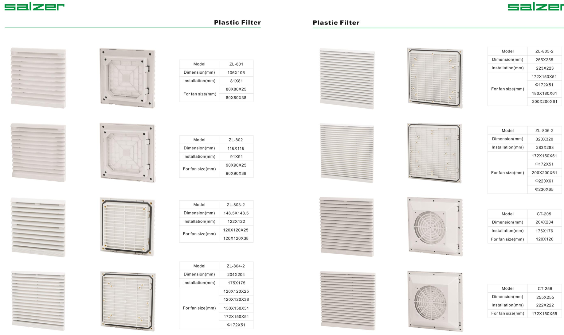 • ZL-803 Fan Dust FilterExquisite design: The elegant shell is of ultra-thin design. The ventilator is designed at a 45-degree angle so as to obtain optimum ventilation, waterproof and dustproof effect. The use of a sealing washer at the rear end of the filter gauze further improves product’s water-proof performance.
