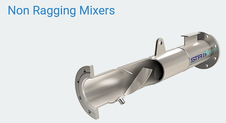 High performance non-ragging static mixer for difficult sludge and wastewater applications, specifically developed for flows with a high content of rags and/or highly fibrous material.