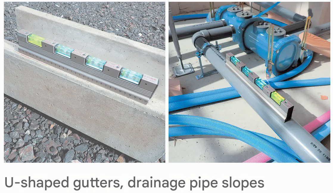 These tools simplify the precise setting of slopes on the job site by providing pre-set slope levels on the level tube.