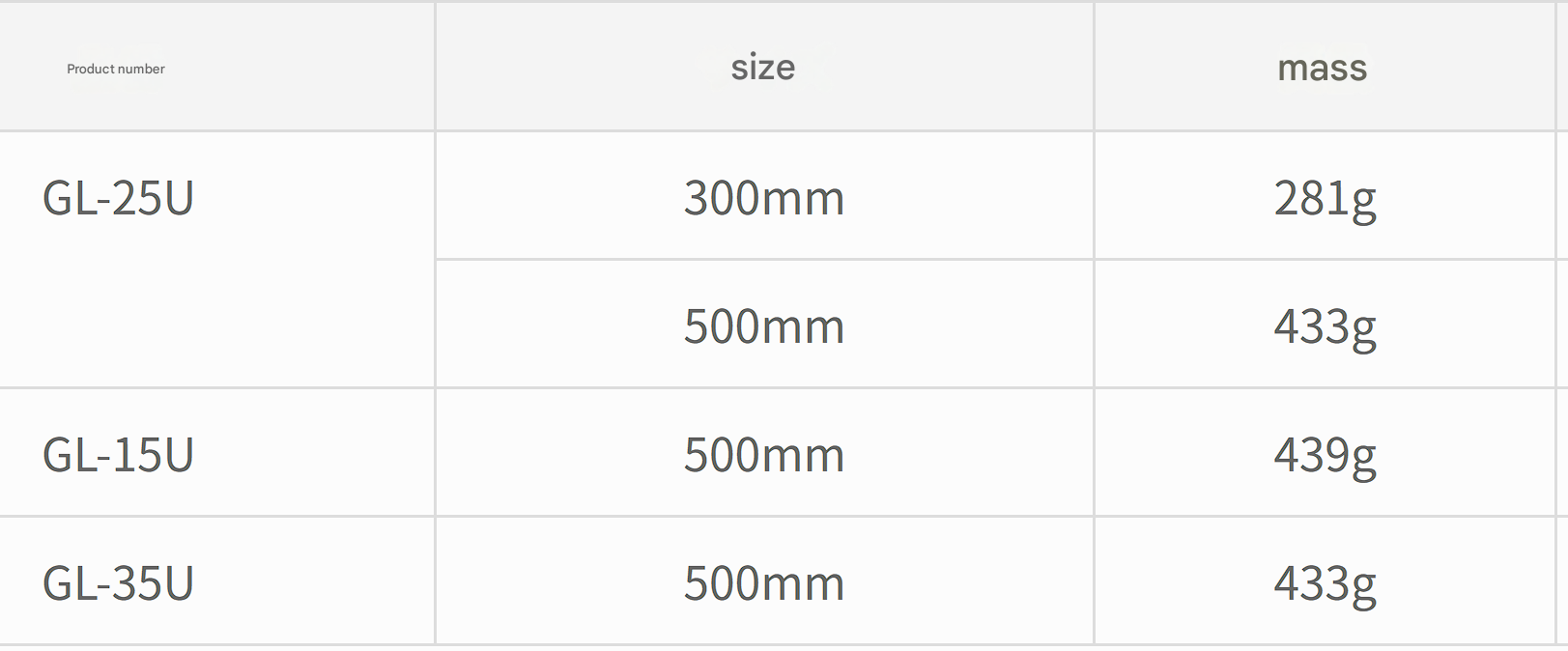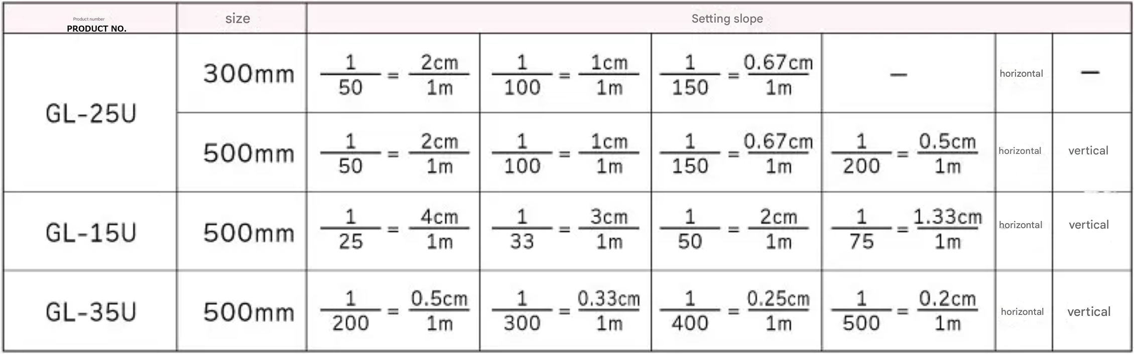 For example, we can change the 1/200 gradient of the GL-25U 500mm to a 1/250 gradient. (Separate quote required.)