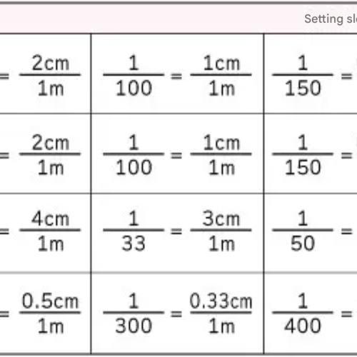 The table shows various slope ratings and their corresponding values in centimeters per meter (cm/m).